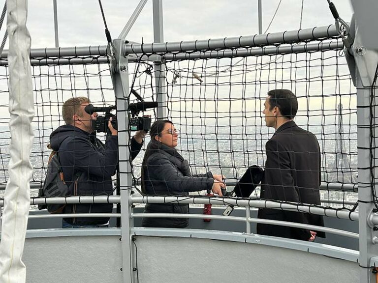 Interview de Stéphane Jamain, directeur de recherche à l’Inserm, à 320m d’altitude dans le Ballon de Paris, grâce au partenariat de la Fondation UPEC, Generali et l’inserm, le 9 octobre.